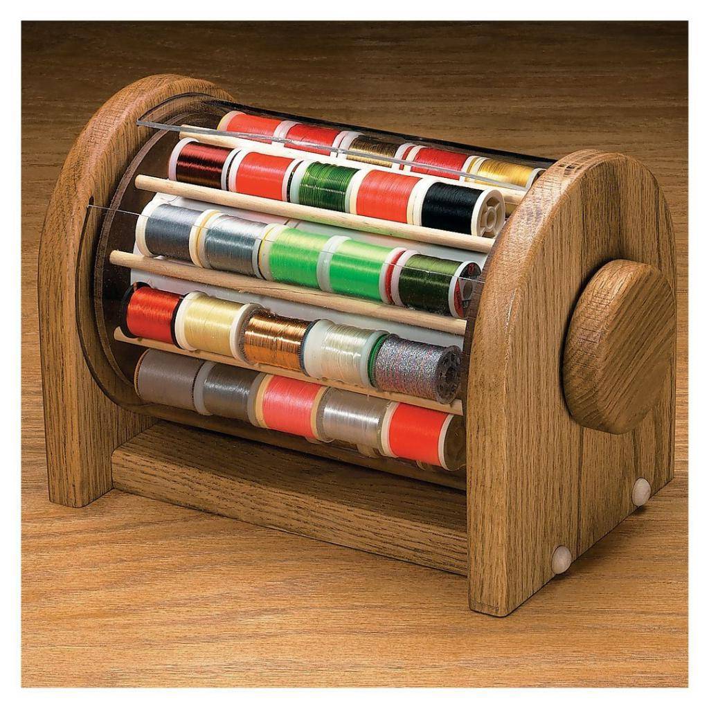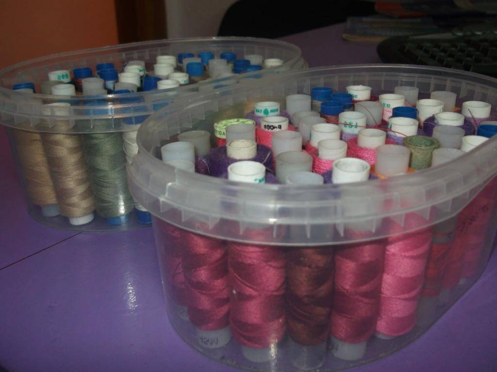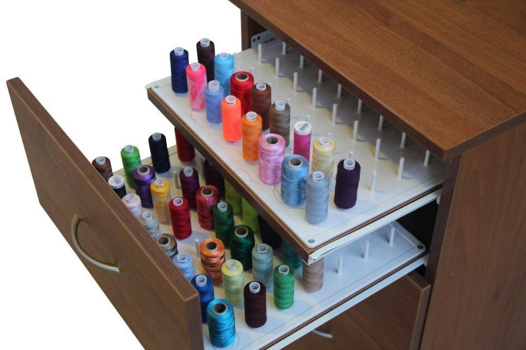 Катушки с нитками должны храниться так, чтобы тонкие нитки не распускались и не спутывались. Если шитье – ваше любимое хобби, то такого материала у вас, несомненно, достаточно много. В этом случае вы можете использовать ящики тумбочки или комода, которые оборудованы специальными вставками со штырьками, на которые ставятся катушки.