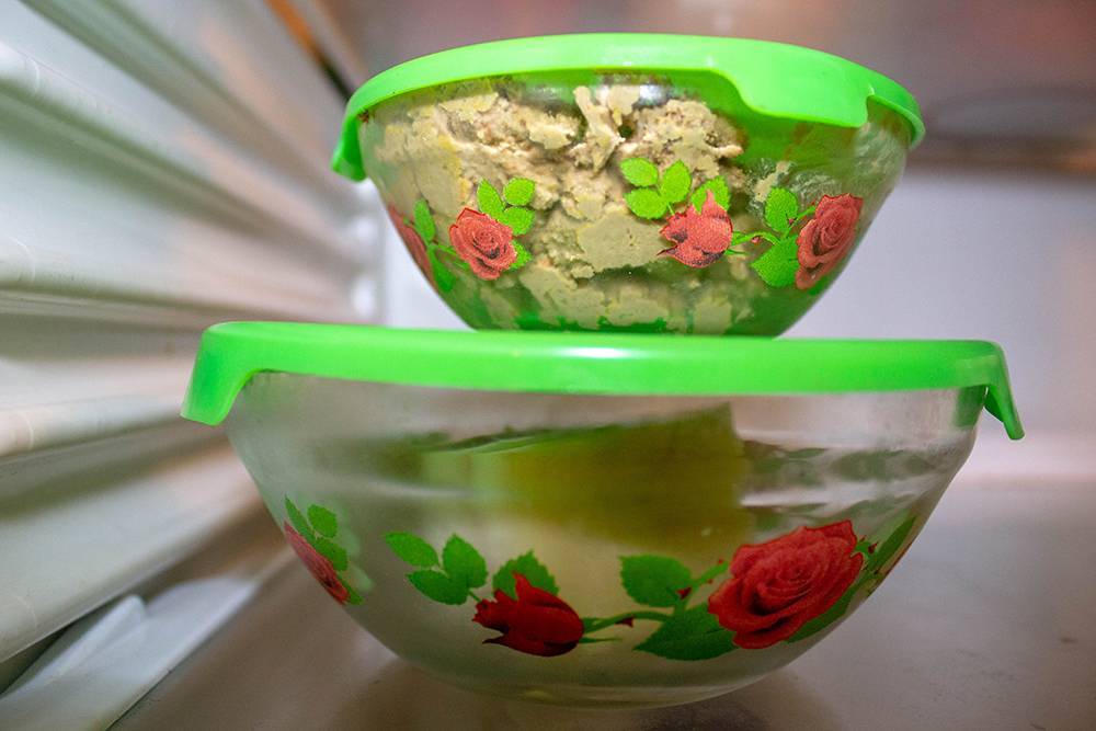 Если у вас непрозрачные емкости, можно придумать систему маркировки. Например, рыбные блюда класть в зеленые контейнеры, мясные — в голубые, а молочные — в желтые.