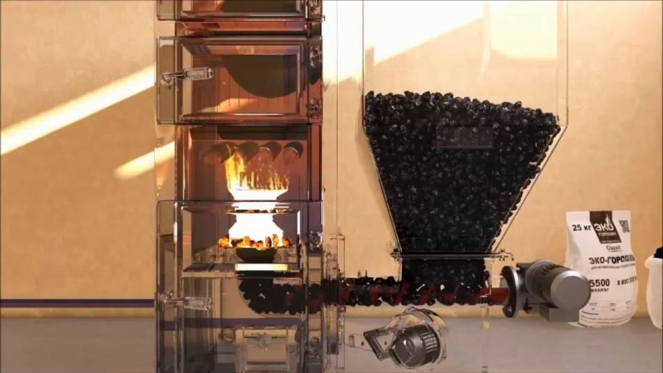 - Самое интересное, что одной закладки таких пеллет достаточно на 5 дней отопления. Это конечно существенно снижает количество вмешательств в работу котла и уменьшает необходимость постоянно подкидывать дрова. Потому что выгорают эти пеллеты довольно долго, в отличие от дров и угля.