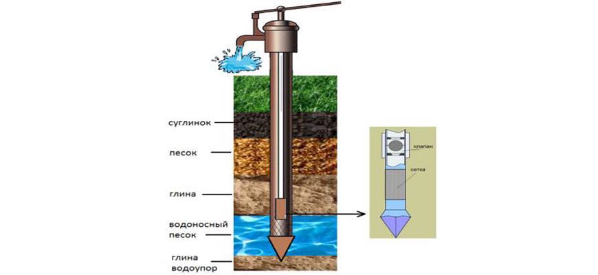 Конструкция абиссинской скважины.