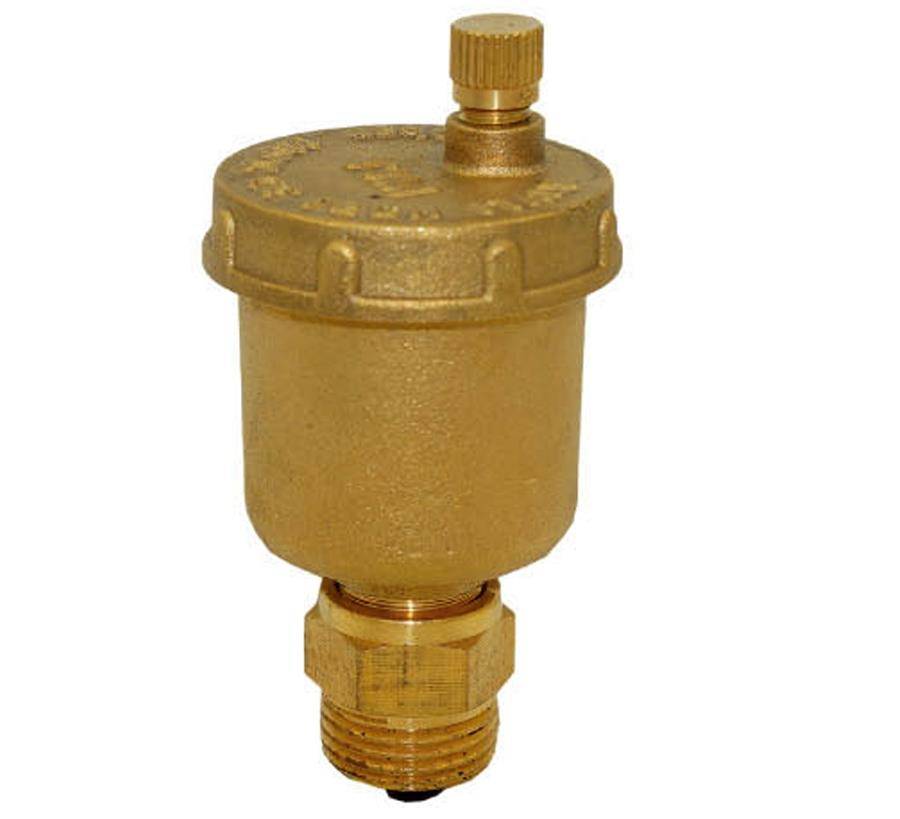 Это устройство самостоятельно выводит воздух из системы отопления. Устанавливается либо вертикально или горизонтально. Состоит из латунного корпуса, поплавка, выпускного клапана и шарнирного рычага. Чтобы теплоноситель не мог протечь через него, воздухоотводчик оснащён защитным колпачком.