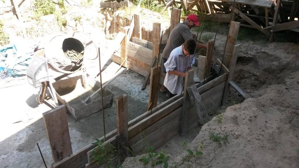 - снаружи выставляется опалубка, только по стороне, прилегающей к грунту;