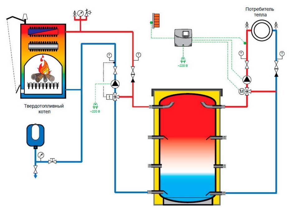 Подключение теплоаккумулятора к твердотопливному котлу