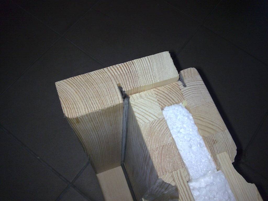 - Бруски крепят по периметру и оборачивают их утеплителем.