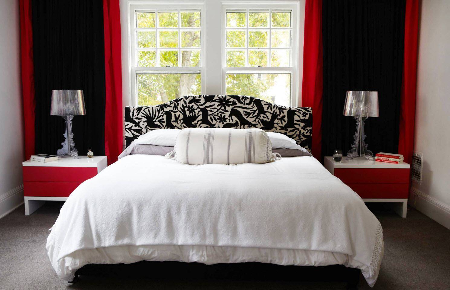 Если черный цвет преобладает над белым, следует добавить в интерьер еще один цвет, например, бордовый ил красный. Он добавит спальне страсти, жизнерадостности и энергии.