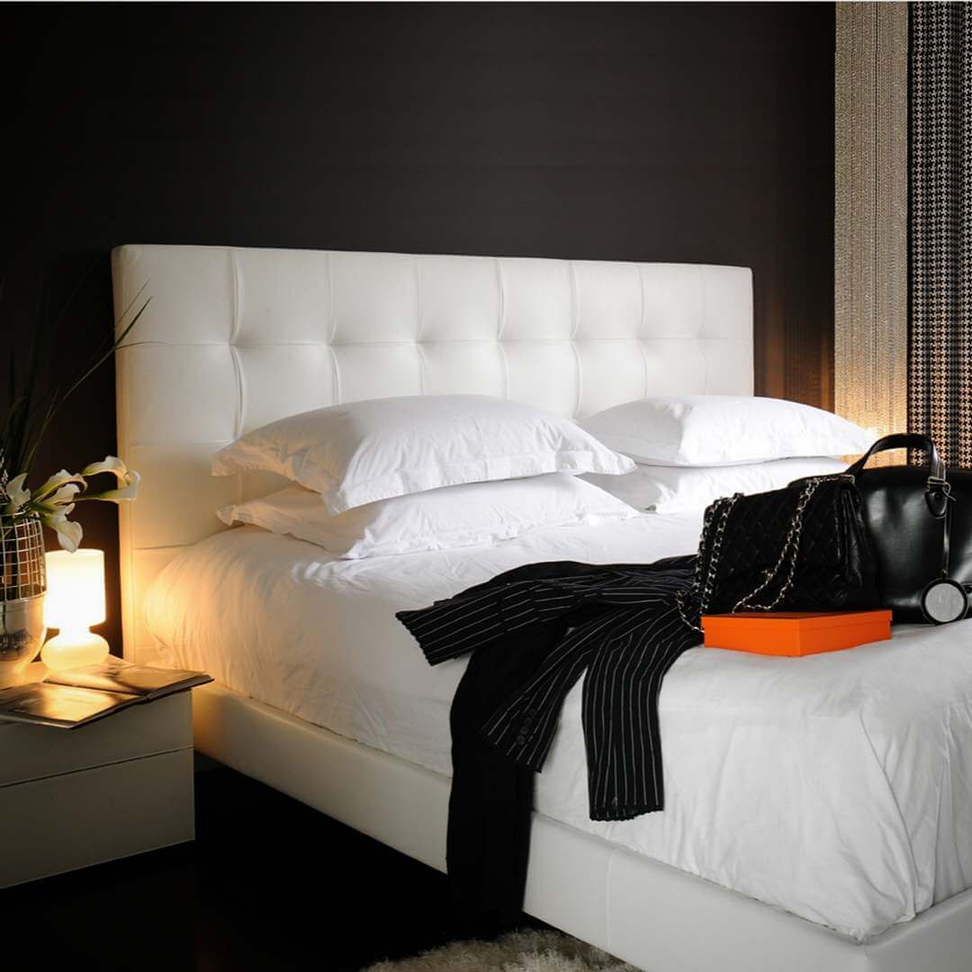 При создании спальни в черно белых тонах мебель будет или черной или белой или комбинированной. ее цвет зависит от оформления стен, потолка и пола.