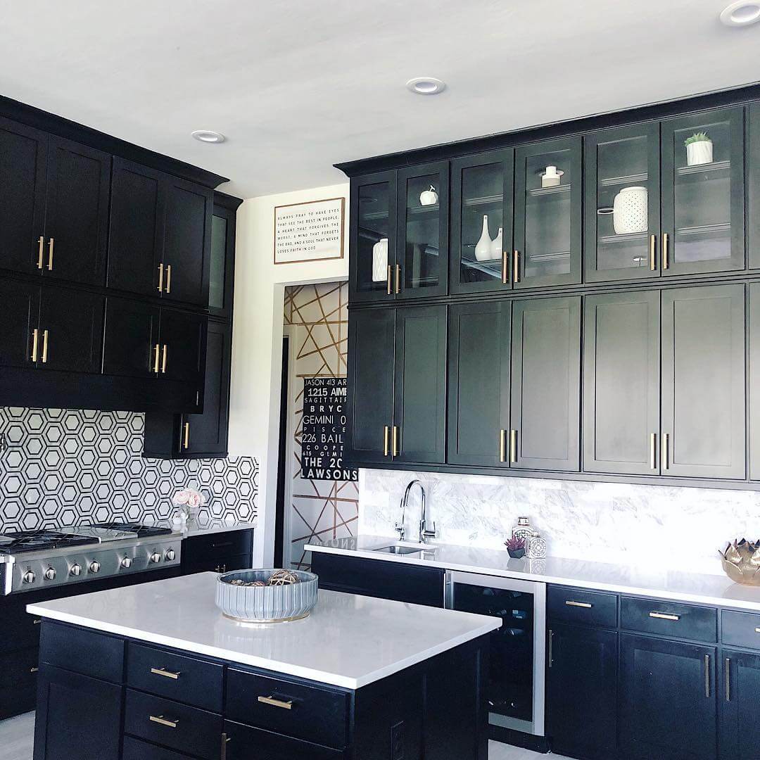 Черная мебель для ванной комнаты в классическом стиле — белая или серая плитка, а помещении может контрастировать с мебелью из темного стекла. Если вы не хотите, чтобы интерьер выглядел слишком однотонным, его следует дополнить такими аксессуарами, как мягкий коврик для ванной комнаты в пурпурных тонах, темно-синие полотенца и элегантные плетеные косметические корзины.