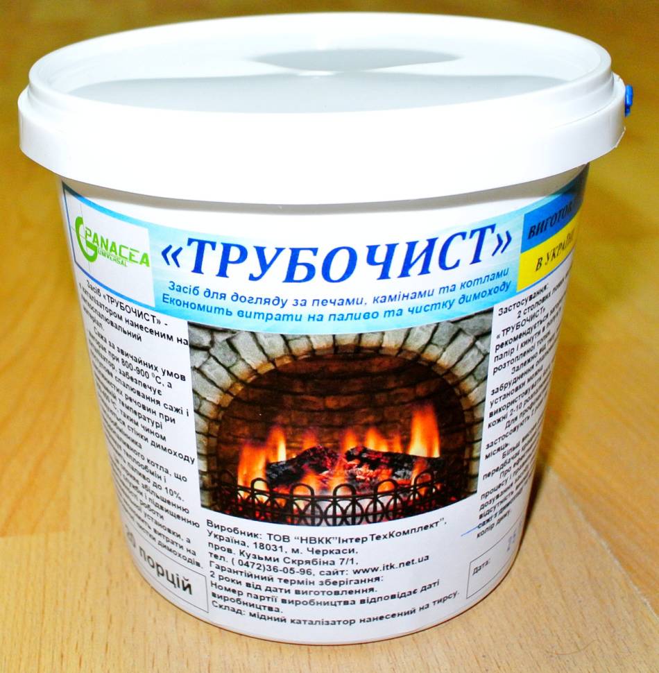 - Трубочист. Это вещество, которое используется для прочистки печей, также реализуется в виде порошка. Существуют и жидкие варианты, но наименее трудозатратным является способ с использованием порошка.