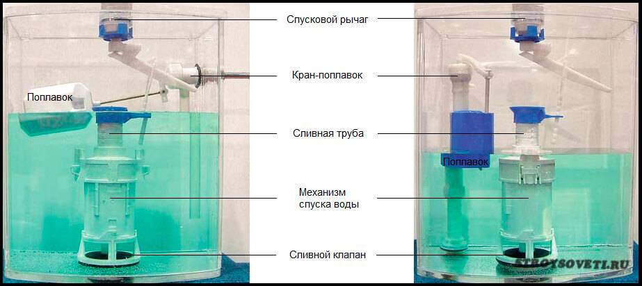 Аналогичные дефекты, но значительно реже возникают и в современных моделях унитазов при поломке поплавка и наполнении его водой.