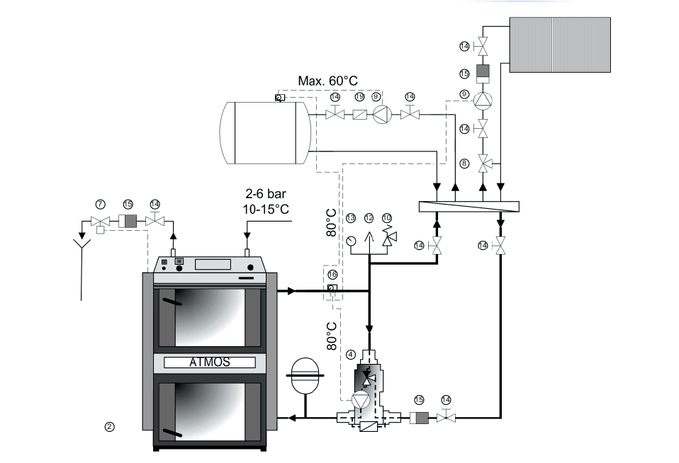 При такой простоте обвязки, монтаж пеллетных котлов может производить не специализированная организация, а любая строительная организация с лицензией.