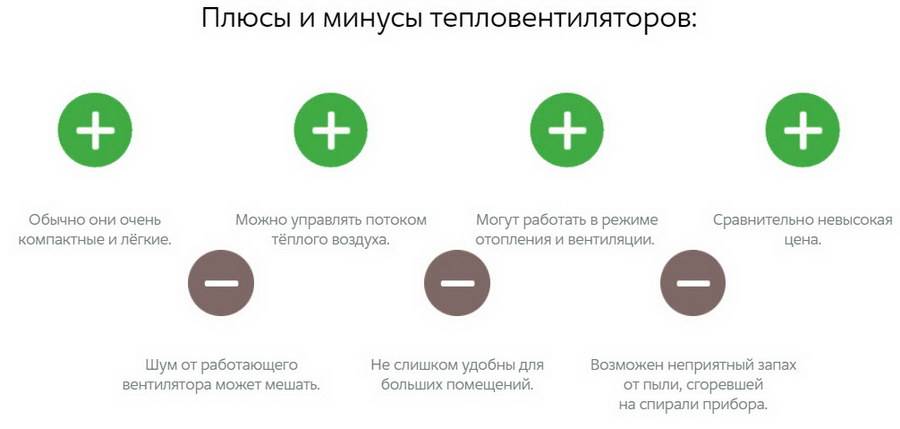 Давайте посмотрим на положительные черты тепловентиляторов: