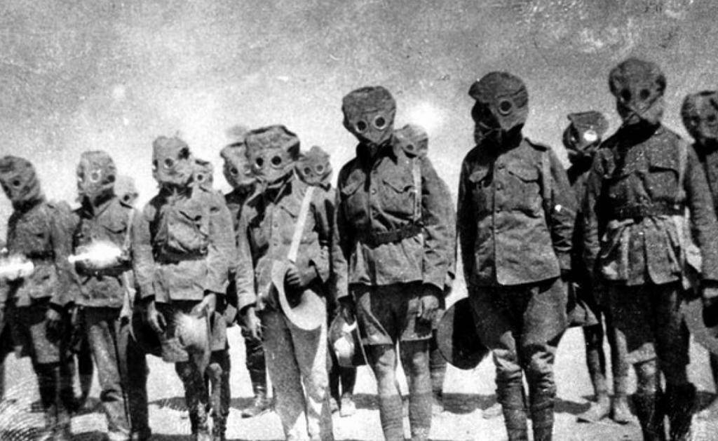 Солдаты Антанты в противогазах