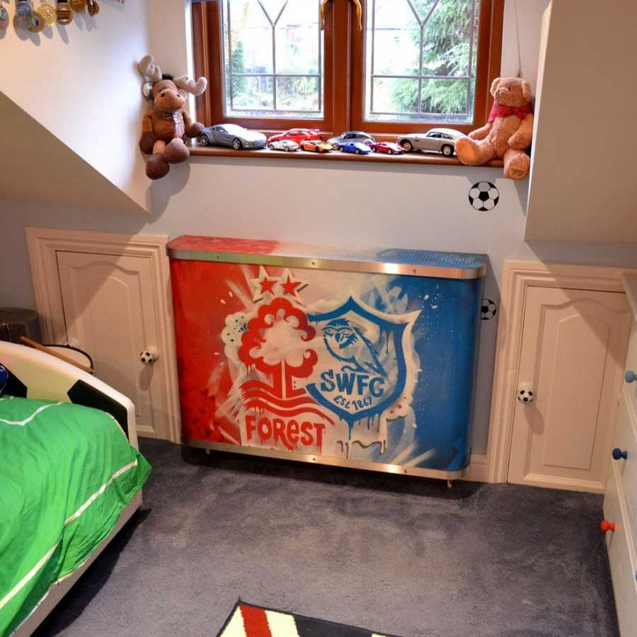 Все зависит от возраста и увлечений малыша. Такая деталь будет прекрасно сочетаться с атмосферой детского помещения и защитит ребенка от ожогов и синяков.