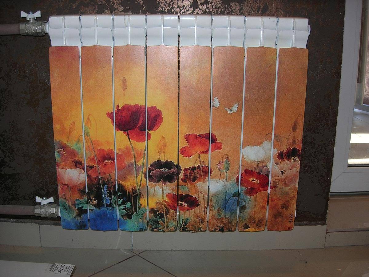 Особо оригинальные люди нанимают художников. Они используют батарею вместо холста и рисуя на ней устойчивыми к теплу красками, создают неповторимые шедевры, которые подходят к интерьеру комнаты. Преимуществом является возможность нарисовать новый рисунок, если вдруг захочется изменить дизайн комнаты.