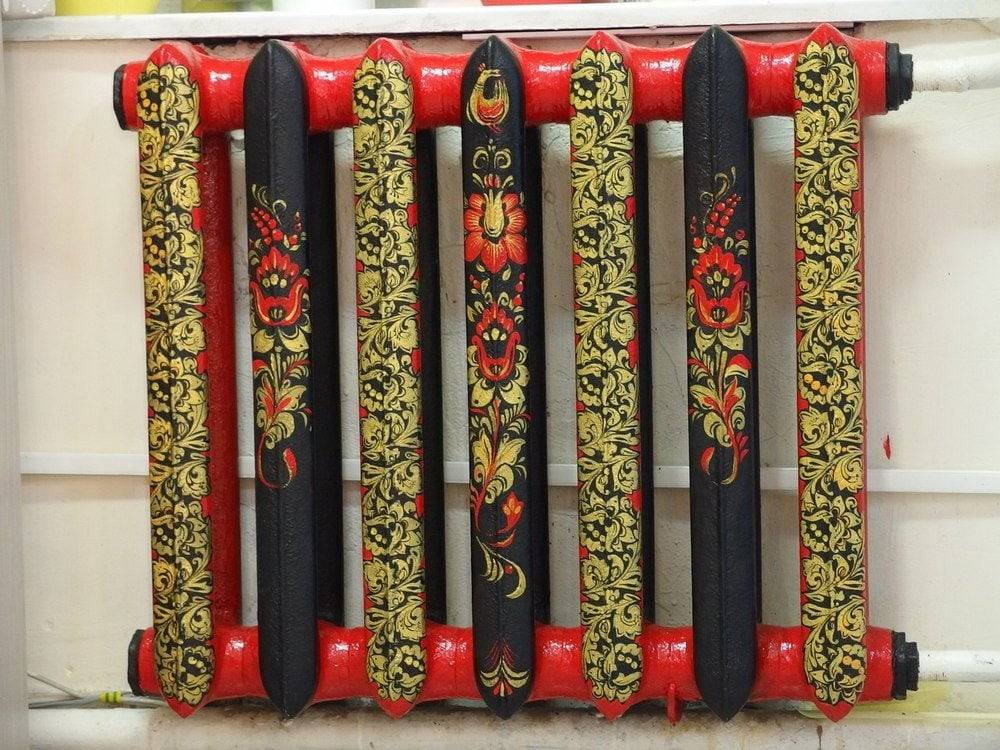 Прежде чем приступить к декорированию батареи, необходимо тщательно вымыть радиатор, а также при надобности нанести на него новую краску, оттенок которой будет гармонировать с интерьером, а также хорошо сочетаться с подобранными орнаментами.