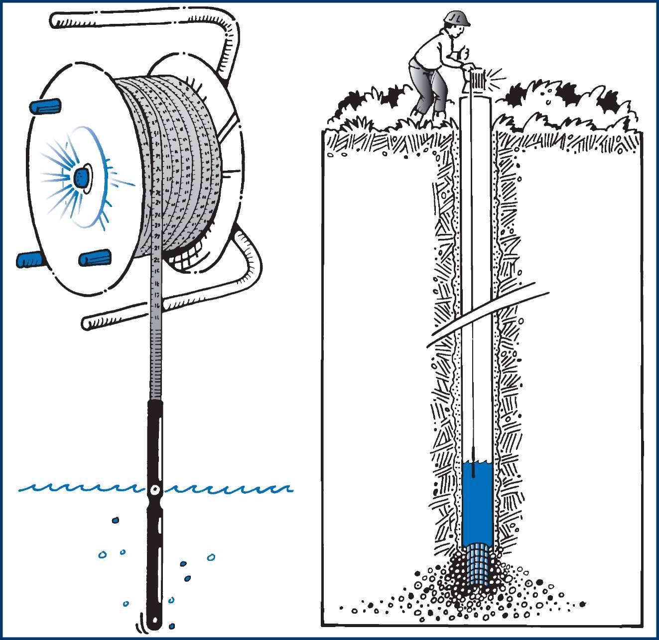 - Извлечь бечевку наружу и разложить по прямой линии на земле. Измерив сухую часть, определяют расстояние до водяного зеркала. Чтобы упростить задачу, перед началом процедуры шнур оснащают цветными лентами на одинаковом расстоянии.