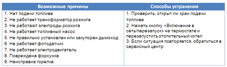 Код 01 означает «отсутствие зажигания»: не удается произвести розжиг.