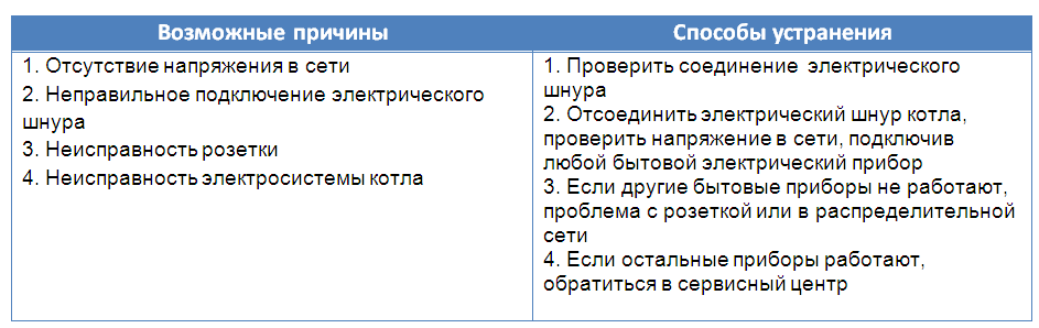 Признаки неисправности: прибор подключен к сети, но питание не поступает.