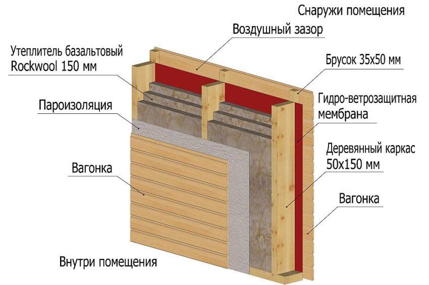 «Пирог» каркасной стены с использованием ветрозащитной мембраны