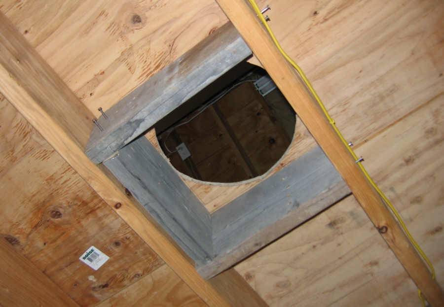 В перекрытии нужно сделать отверстие, диаметр которого будет больше диаметра трубы на 5-10 см: это потребуется для того, чтобы замазать трубу в месте прохождения ею перекрытий теплоизолирующим материалом. Если в щелях между перекрытиями или вблизи трубы находятся изоляционные материалы или другие легко возгораемые предметы, их обязательно нужно убрать: когда труба разогреется от дыма и температура ее возрастет, вместе с ней повысится и риск возгорания теплоизоляционного материала.