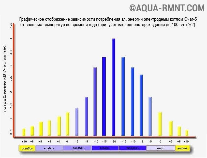 Наглядный графический пример работы электрического котла: зависимость потребления электроэнергии от температуры за окном