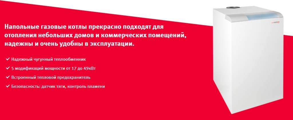 Производительность чаще всего встречающихся котлов этой марки может достигать 150 кВт, что позволяет использовать их для обогрева зданий площадью 1200–1500 кв. м. Для работы оборудования необходим магистральный газ, за счет чего оно является одним из наиболее экологичных вариантов среди котлов такой мощности.