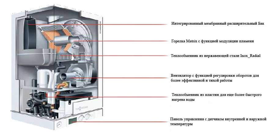 Отличия и особенности двухконтурных котлов рассмотрим на примере Viessmann Vitopend 100-W.