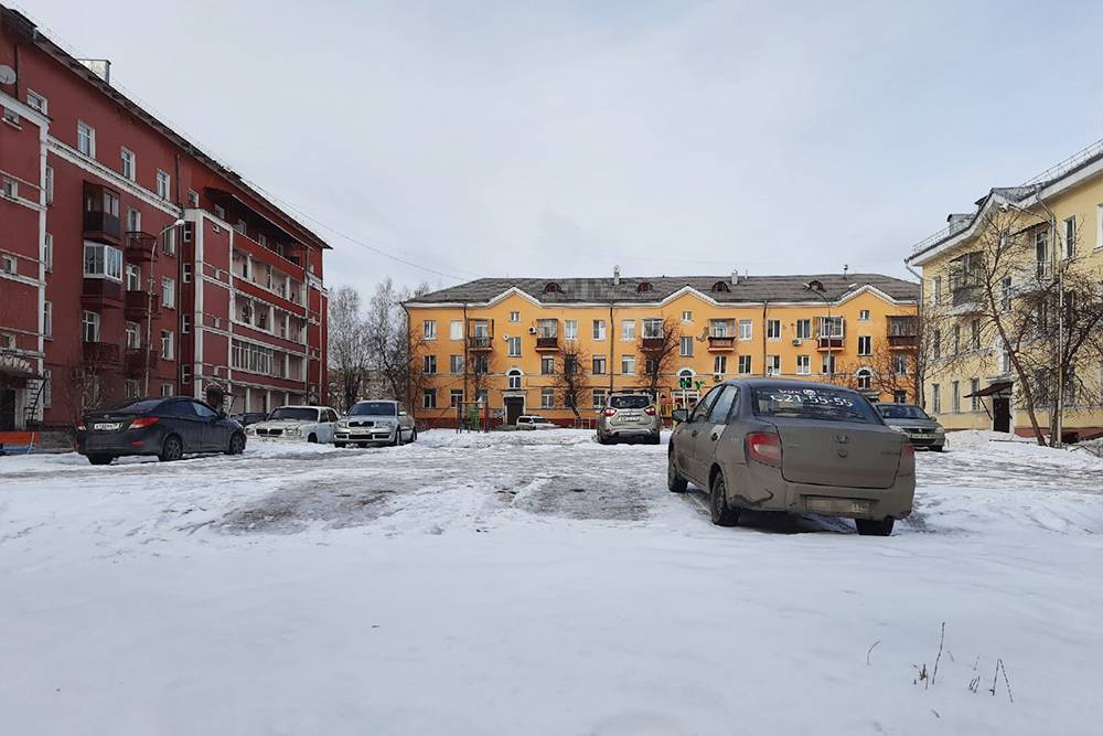 Общий вид двора, которым пользуются жильцы трех сталинок. Сейчас здесь довольно голо
