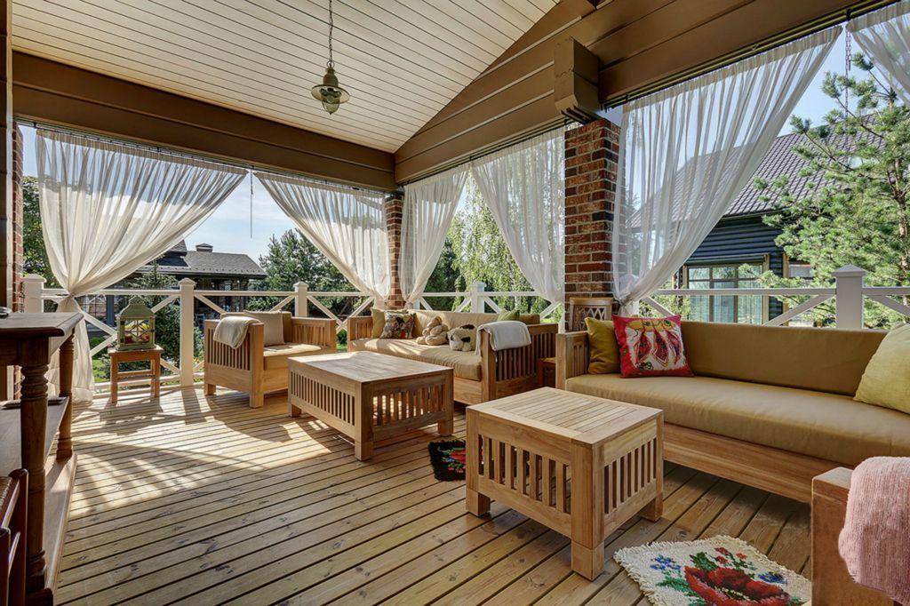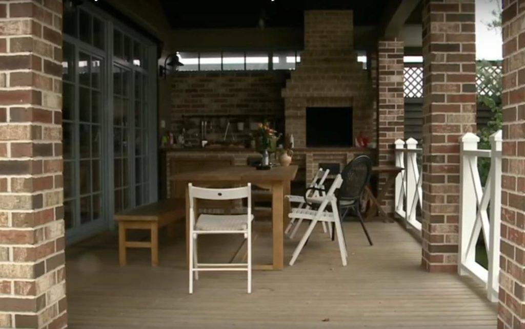 Помимо небольшой веранды, есть большой участок для летнего отдыха на воздухе. Большая часть выполнена из дерева, кроме разве что мягких подушечек на мебели. В знойные летние вечера можно закрыть тюль, чтобы насекомые не мешали. Таким образом, артистка может собирать немало гостей, они нисколько не потеснят ни ее, ни друг друга.