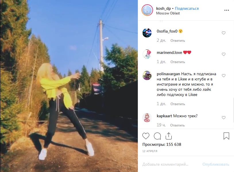- Первый ролик. Настя Кош стала известной благодаря своим видео в приложении Лайк. Первый ролик она выпустила в марте 2018 года.