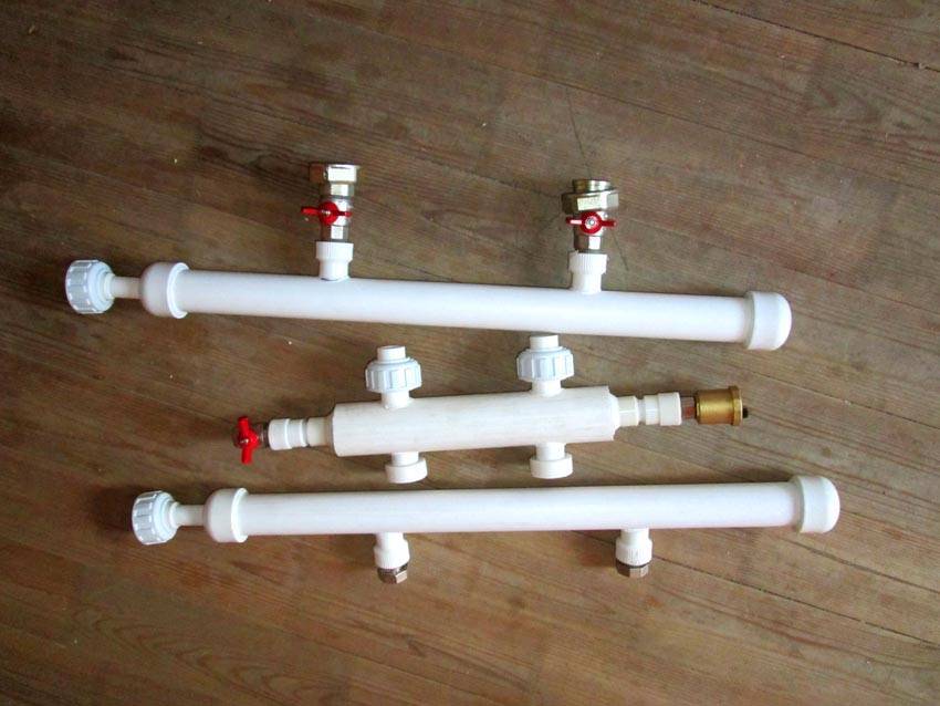 Производятся изделия в виде комбинации разделителя и коллектора. При этом реализуется зонный температурный отбор теплоносителя для различных отопительных блоков.