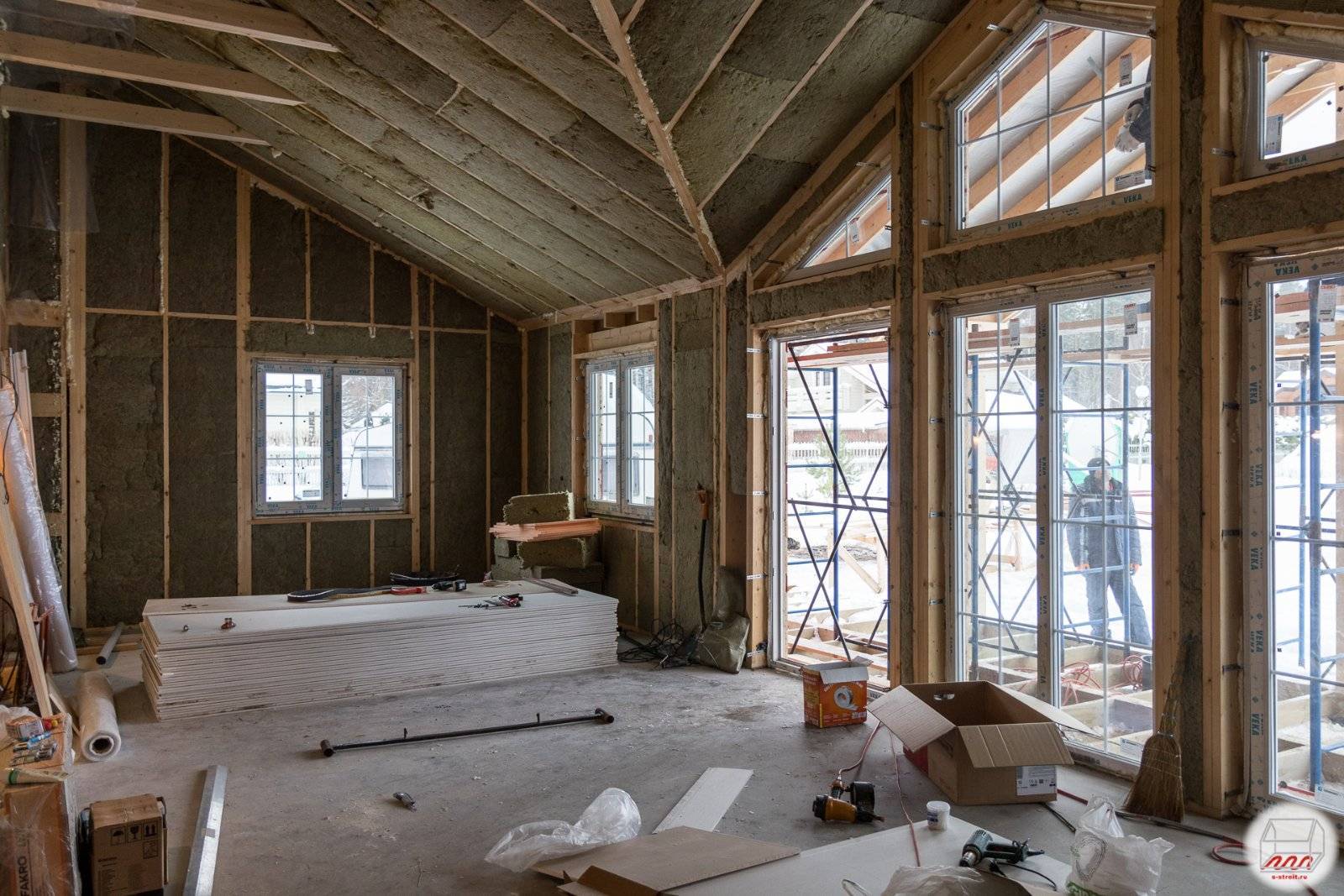 Получится дешево и сердито. Будут в сухости не только строительные материалы, но и сами монтажники, которые на стенах работают.