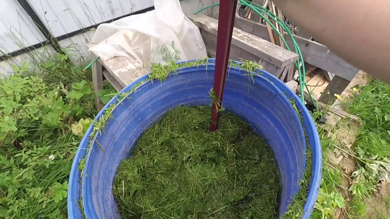 - Подкормка из травы для томатов. В бочке объемом 200 литров смешивают мелко нарезанные кусты крапивы и листья одуванчиков. Строго определенной пропорции нет, бочка должна заполнится травой на треть. К траве добавляют ведро коровьего, конского или козьего навоза и заливают водой. Оставляют бочку для брожения на 10 дней. Рекомендуется бочку накрыть пленкой, чтобы ускорить процессы брожения и оградиться от неприятных запахов. При применении концентрат разводят водой. На ведро воды потребуется 1 литр концентрата. Каждый куст подкармливают по 3,5 литра.