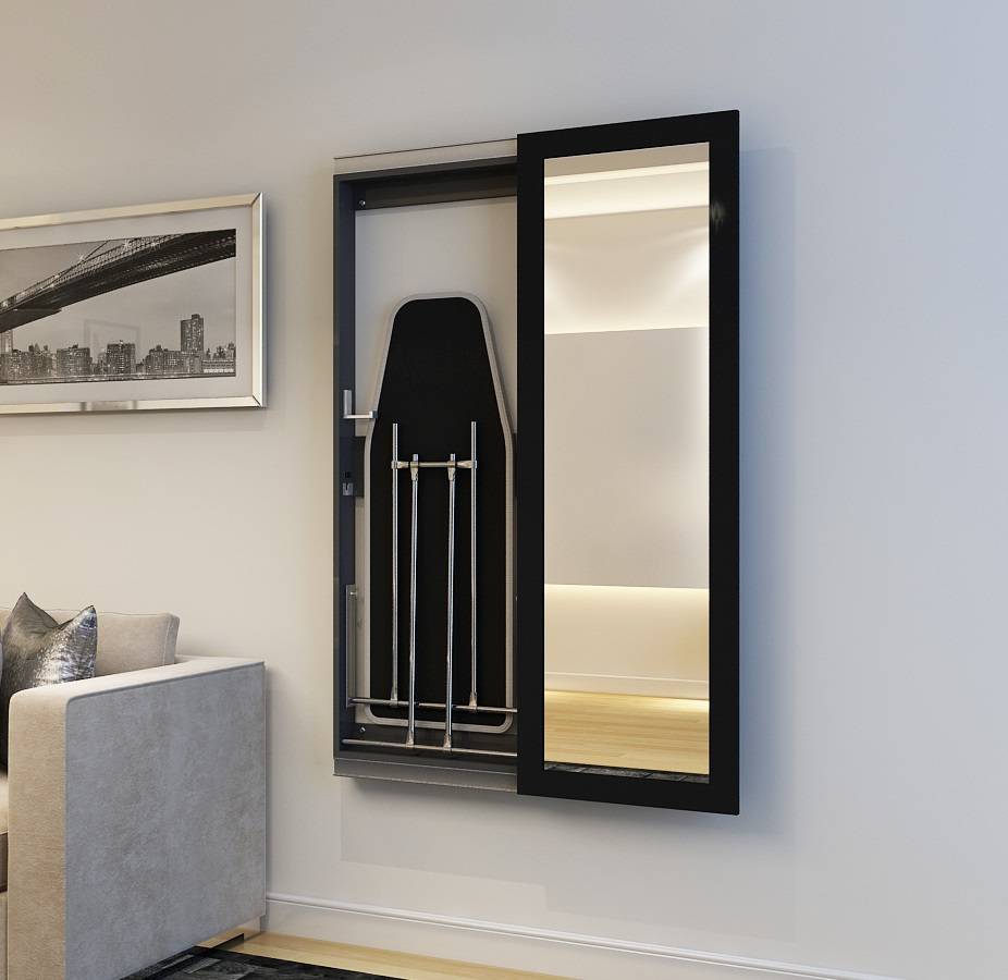 1. Слава тому, кто придумал откидывающуюся гладильную доску! Теперь ее можно прятать в изящный настенный шкафчик или за зеркало. Выбирая такую доску, проверьте, что конструкция надежна и доска не шатается. Цена доски – от 14 до 24 тысяч рублей.