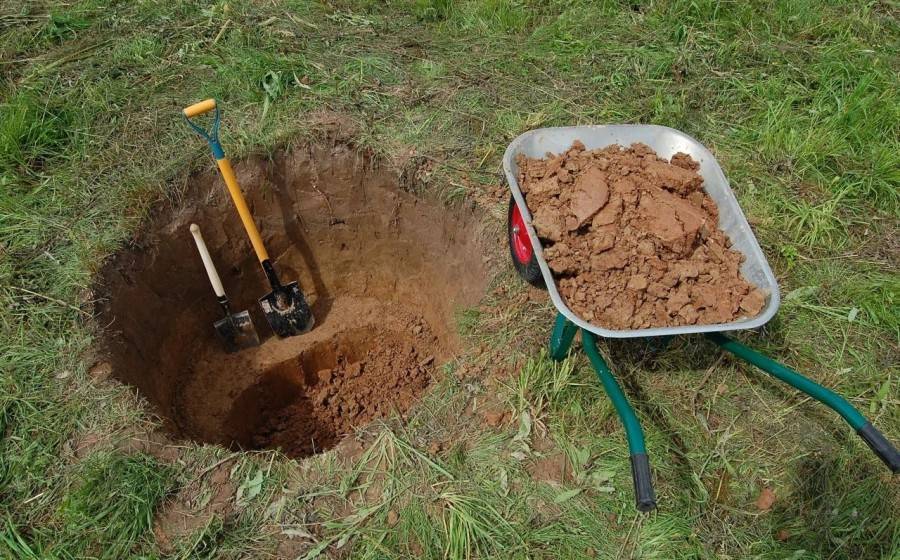 - Котлован под септик можно выкопать лопатой или при помощи строительной техники. При этом габариты ямы должны немного (на 20 см) превосходить размеры колец.