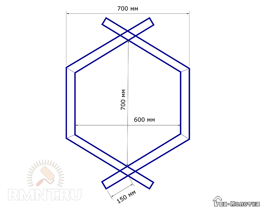 Полученные заготовки складываем друг на друга стопкой, чтобы они при этом образовали каркас в форме правильного шестиугольника, слегка прихватывая сваркой.