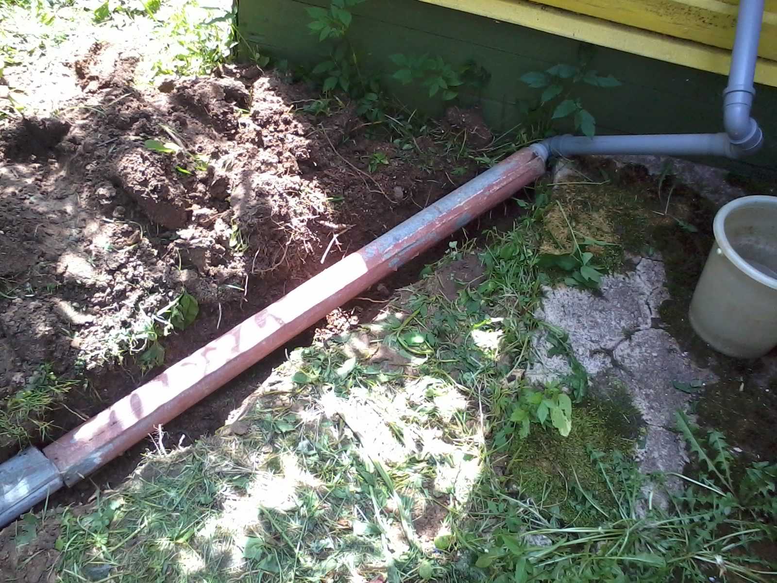 Это участок работ тоже имеет свои нюансы. Так траншею лучше копать сразу нужной глубины. Если придется подсыпать грунт, его надо очень хорошо утрамбовать — не просто набросать земли, пройтись трамбовкой до высокой плотности. Это необходимо, потому что просто уложенный грунт усядется, а с ним просядет труба. В месте просадки со временем образуется пробка. Даже если ее удастся пробить, периодически она там будет появляться снова.