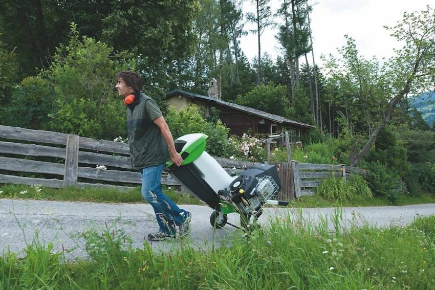 Конструкция измельчителяустанавливается на стандартную двухколесную базу, что позволяет сделать удобным и легким перемещение. Устройство позволяет быстро утилизировать разные садовые отходы в виде стеблей растений, древесных отходов, опавших листьев, а также веток и травы или яблок и других плодов, опавших с деревьев. В результате переработки древесины или растительного мусора можно получить полезное и очень эффективное удобрение для подкормки растений, ценность которого не ниже некоторых видов навоза.