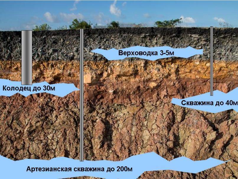 - Глубина в 2-2,5 метра. Здесь можно найти водоносную жилу, но использовать ее в быту, и тем более для питья, недопустимо. В этой части грунта скапливается много вредных примесей от канализационных стоков, талого снега и дождевой воды. Кроме того, эти слои отличаются нестабильностью, то есть, нет уверенности в том, что источник после потраченных денег на бурение колодца через полгода не иссякнет.