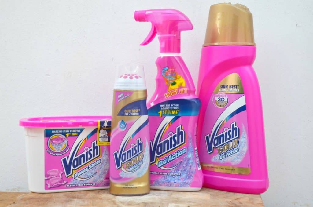 «Ваниш» — пятновыводитель с кислородным отбеливателем без хлора, очищающий ржавые и мыльные разводы на любой ткани. Порошок или гель быстро расщепляет и удаляет загрязнения с поверхности при любой температуре воды. Чтобы отстирать пятно на занавеси, делают раствор: 1 колпачок геля на 5 л теплой воды, замачивают на 2 часа.