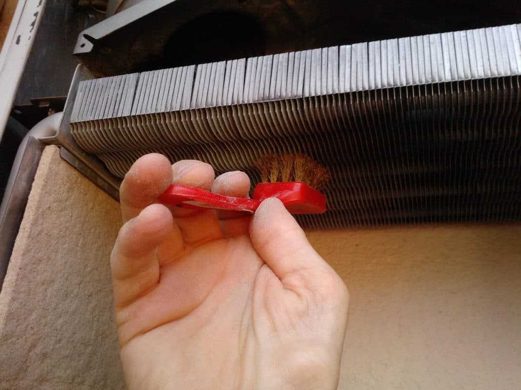 Важный момент: старайтесь для чистки использовать инструмент, который не имеет острых граней. В противном случае можно нанести повреждения теплообменнику, которые в будущем могут вызвать коррозию изделия.