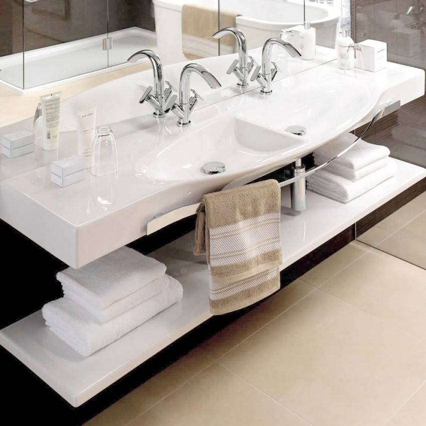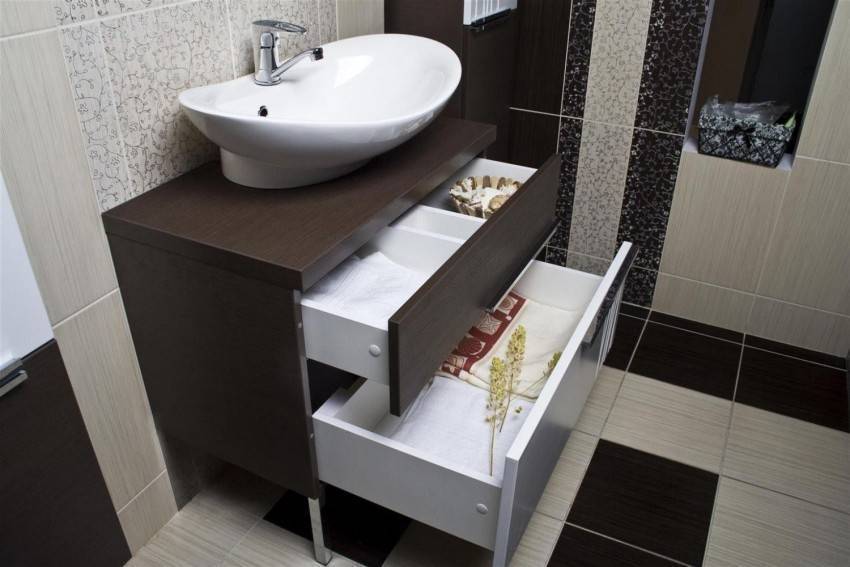 Красивая и элегантная мебель поможет скрыть трубы, неизменно остающиеся на виду при креплении раковины к стене