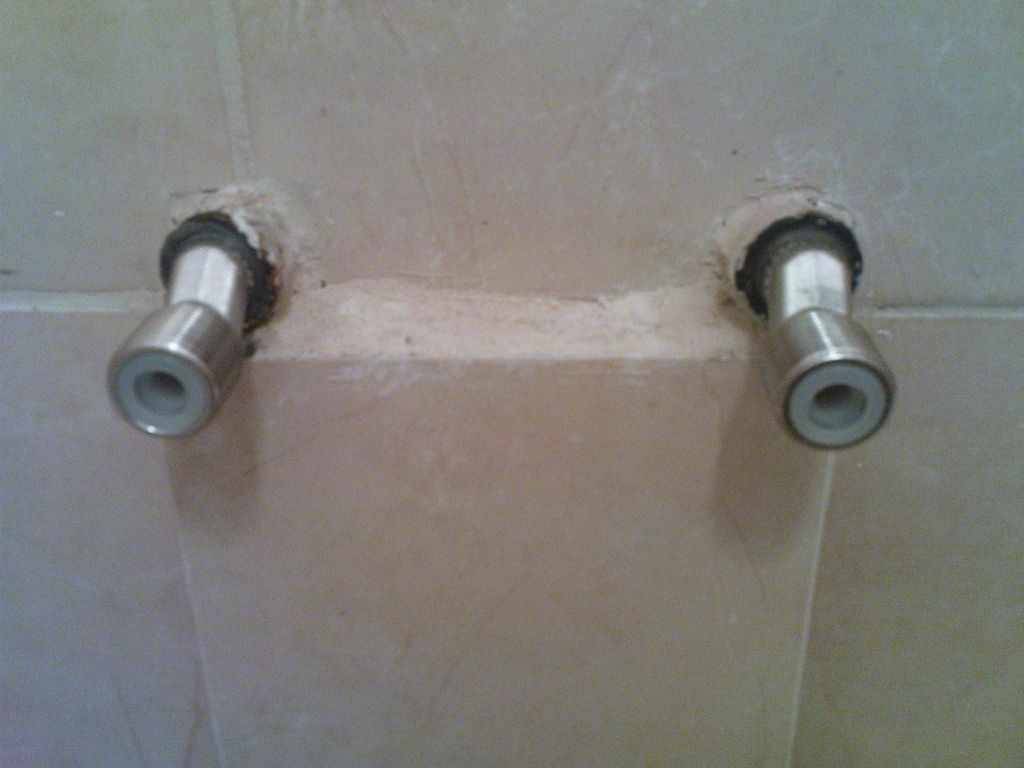Но технология установки смесителя на стену при этом не меняется: смеситель фиксируется на патрубках водопровода, выходящих из стены или надежно зафиксированных снаружи. Отличие лишь в количестве смесителей.