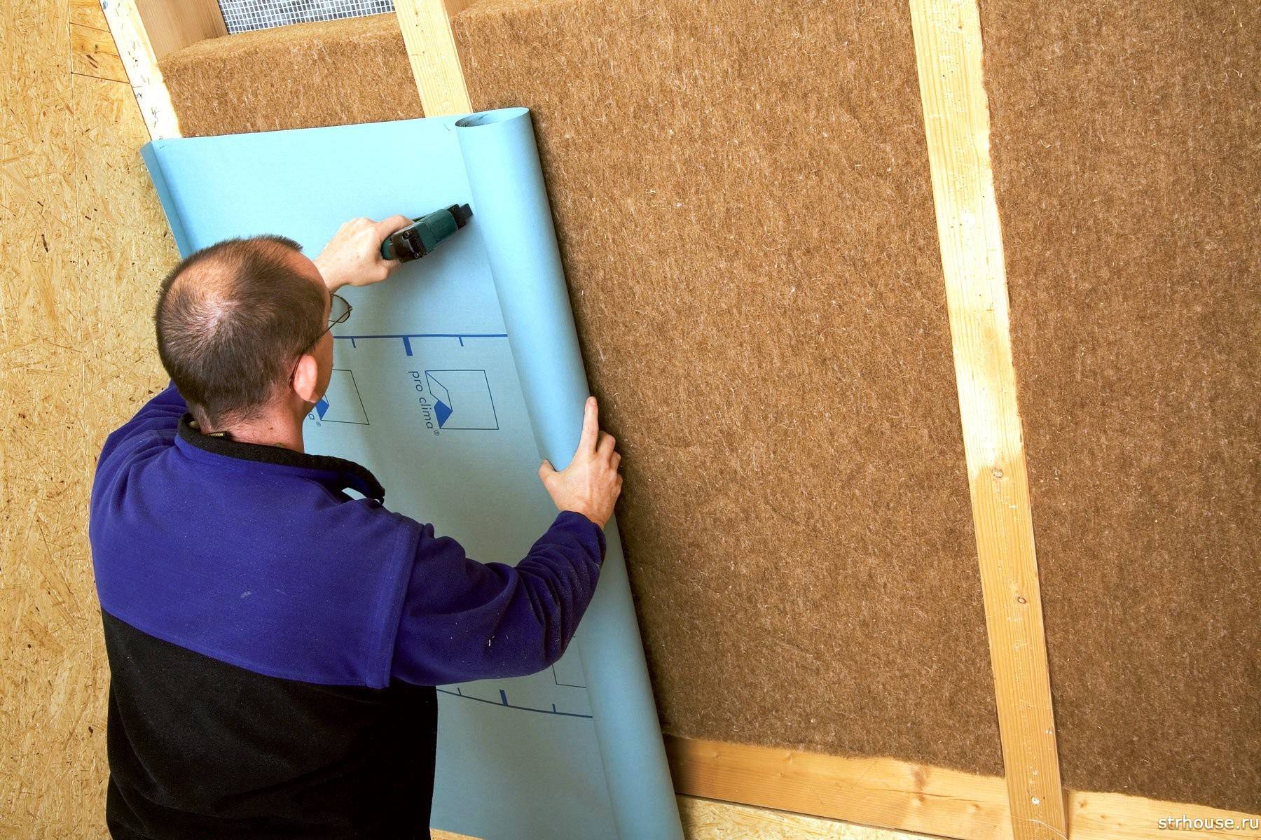 - Установка диффузионной мембраны, отводящей пар на улицу и сохраняющей тепло в помещении.