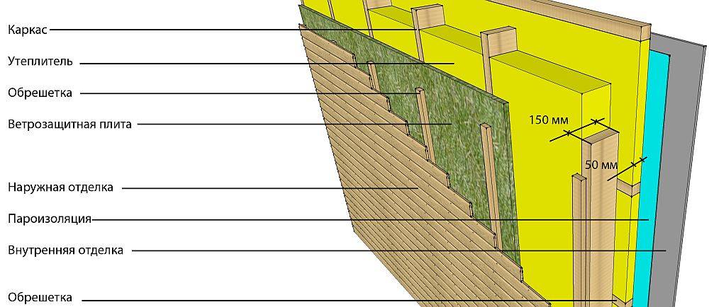 - Установка деревянной обрешетки для фиксации мембраны и размещения наружного утеплителя.