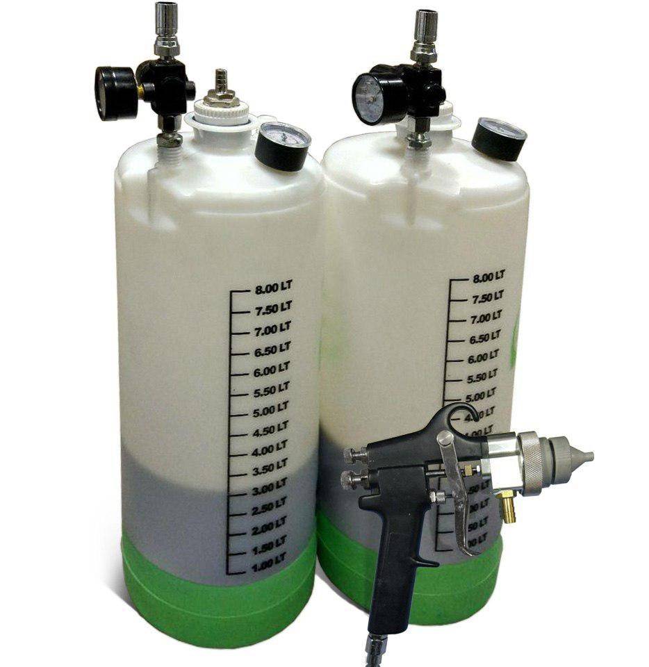 Стоит около от 35 тыс. руб., комплект включает в себя все, что понадобится для нанесения заряженного в баллоны состава, включая сменные сопла для пистолета и защитные перчатки.