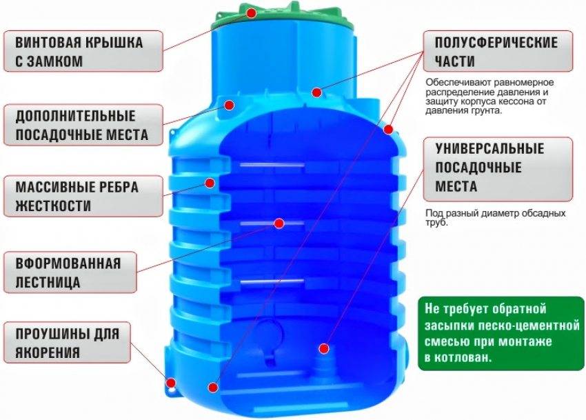 Некоторые наиболее современные модели оснащены специальными полостями, предназначенными для бетона. Если же в системе предусмотрено наличие гидроаккумулятора, то все оборудование может быть подвязано к заранее подготовленному основанию. После того как кессон займет в котловане свое место, оставшиеся промежутки засыпают сухой землей.