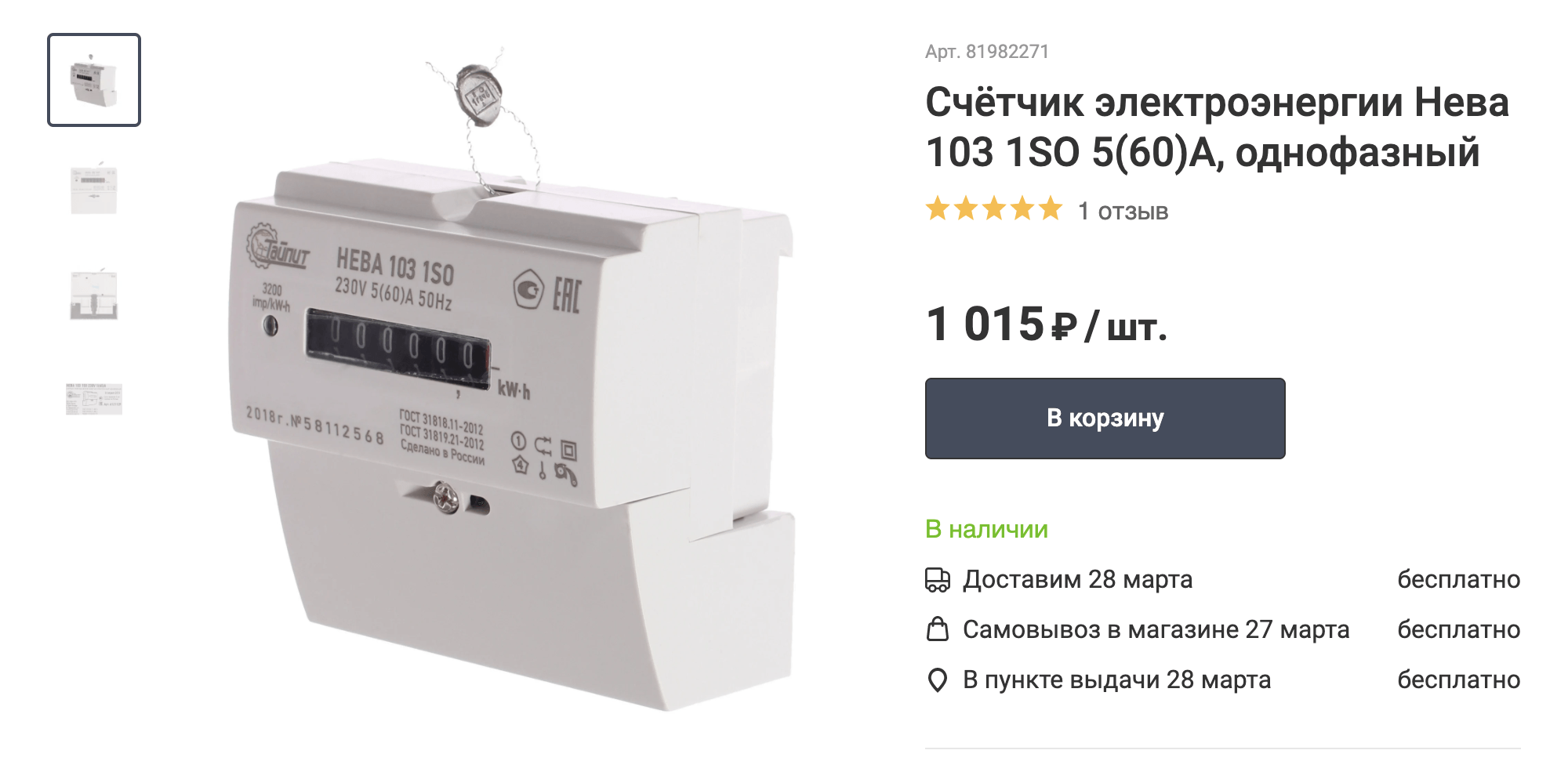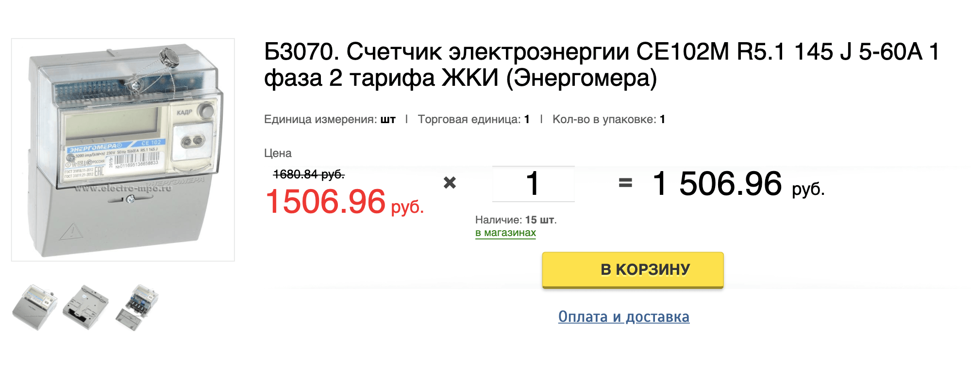 | 3 | ЭНЕРГОМЕРА 459547 СЕ 102 R5.1 145 J 1ф 5-60А | Россия | 1 | 4 | 30 | 1550.00 |