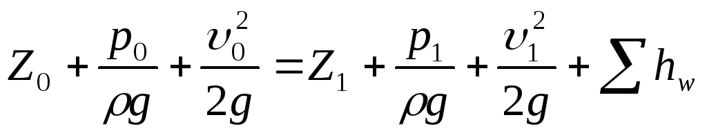 Уравнение Бернулли для сечений 0 — 0 и 1 — 1 (см. рис. 45)