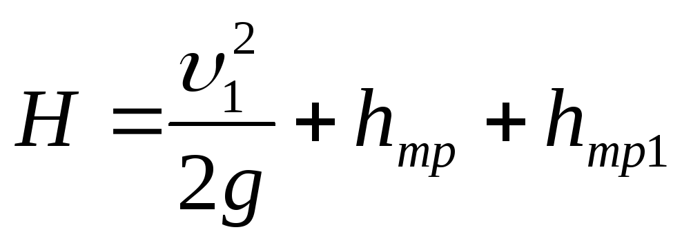 Из уравнения Бернулли для сечений 1 — 1 и 2 — 2, получим